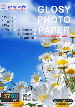 Giấy in ảnh 1 mặt khổ A3 chuyên dùng để in màu, in ảnh, in tờ rơi, menu...với bề mặt trắng sáng, bóng mịn thông dụng cho các dòng máy in phun màu hay máy in epson.