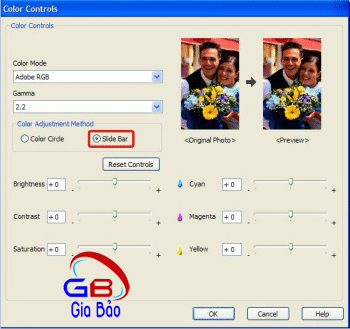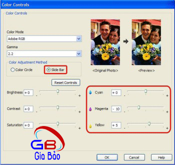 Ctrl+P chọn loại máy in --> Properties --> Advanced --> Settings --> Slide Bar, lúc này bạn có thể tăng hoặc giảm màu Cyan - Magenta - Yellow sao cho đúng màu bạn mong muốn (hình C).