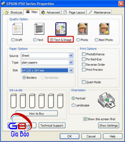 - Chọn giấy Epson Glossy hoặc Epson Photo (giấy ảnh).